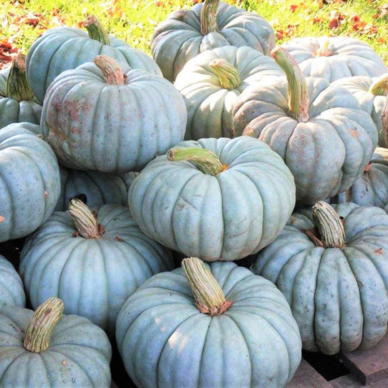 Jarrahdale Blue Pumpkin or Squash is a lovely slate grey-blue-green Cinderella-shaped pumpkin! Jarrahdale is a reliable yielder of 8-10 tall by 10-14 inch-wide Fairytale-like pumpkins with deep ridges and a fine-grained, dry, sweet, nearly stringless flesh that is orange-yellow in color. Delicious roasted, in soups, pies, stews, and curries. It is also rich in vitamins A and C, B vitamins, carotenoids, and minerals.