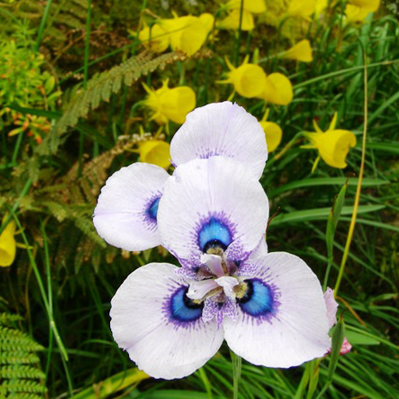 Moraea villosa is characterized by its exquisite, iris-like flowers and distinctive hairy foliage. The flowers typically have six petals arranged in a star-like formation, with colors ranging from white and yellow to shades of blue and purple. The blooms are adorned with intricate markings and contrasting colors near the throat, adding to their allure. The foliage is slender and covered in fine hairs, giving the plant a unique texture and appearance.