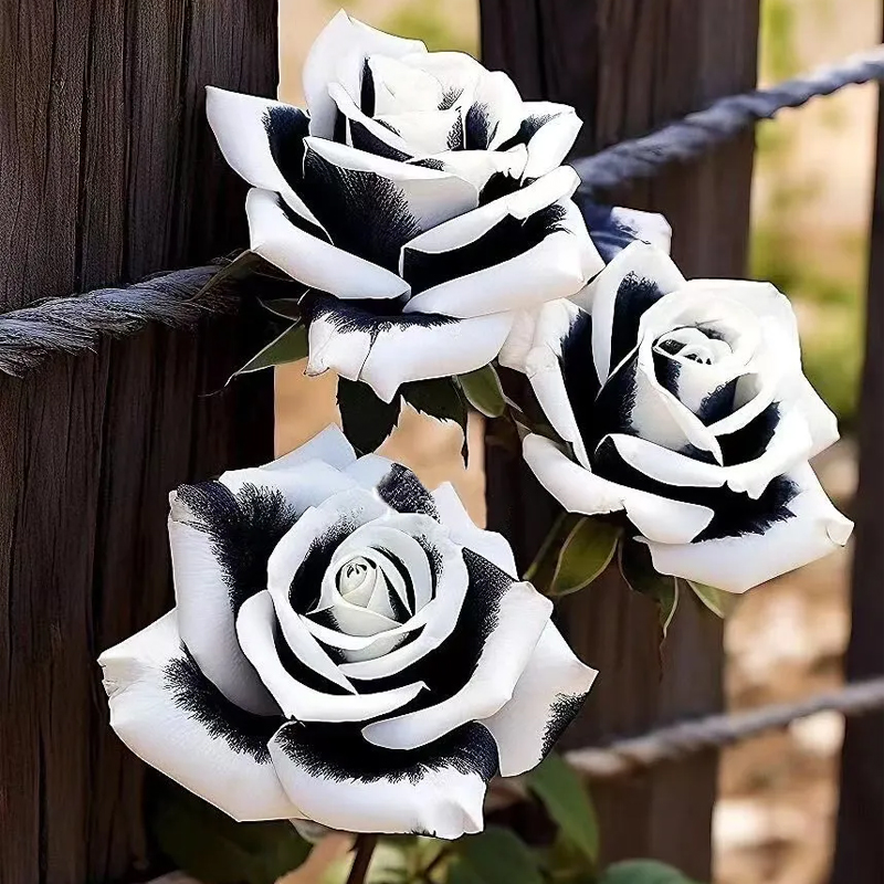 Unique Color Mix: The eye-catching combination of black and white petals creates a captivating visual effect. WINTER BLOOMING: These roses can withstand the cold and add beauty to your garden even during the colder months.