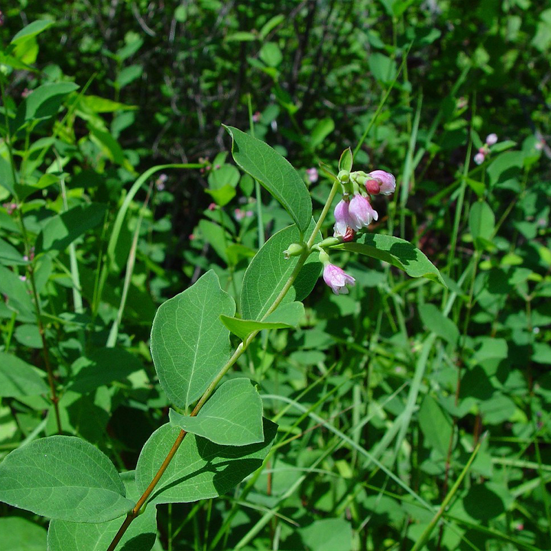 Snowberry typically blooms in late spring to early summer, producing small, pinkish-white flowers that are inconspicuous compared to the berries that follow. The flowers are borne in clusters along the stems and provide nectar for pollinators such as bees and butterflies.